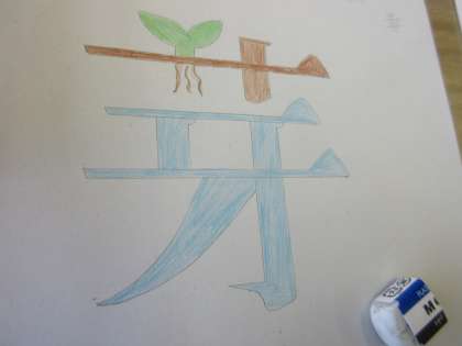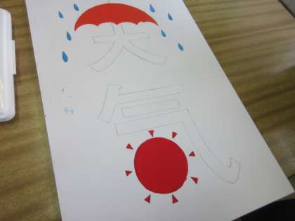1−4美術の授業です。 絵文字をつくっています。様々なアイディアがあります。