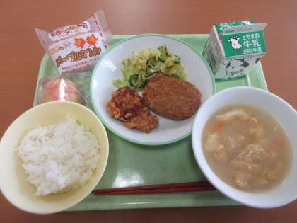 今日の給食 公開日 2023/02/09 更新日 2023/02/09 給食 今日は選択献立です。どちらを選びましたか? ごはん 牛乳 豚肉の竜田揚げ or 肉じゃがコロッケ あわせ和え みそ汁 メープルマフィン or いちごのシュークリーム