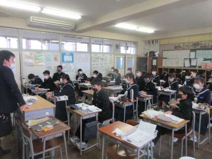 2−3社会、2−4英語の授業です。 積極的に発言し、活気のある授業です。