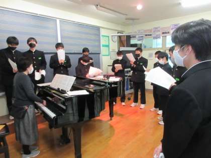 1年生の授業(その3) 公開日 2023/02/13 更新日 2023/02/13 第1学年 1−4音楽、1−5英語の授業です。 音楽では、卒業式に歌う歌のパート練習、 英語では、発音練習に取り組んでいました。