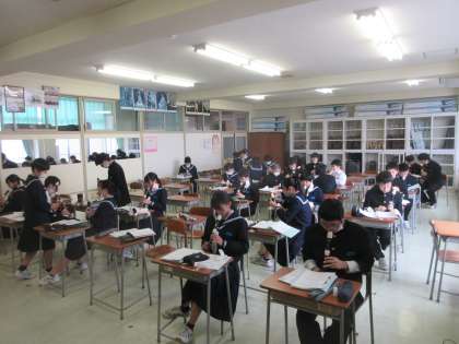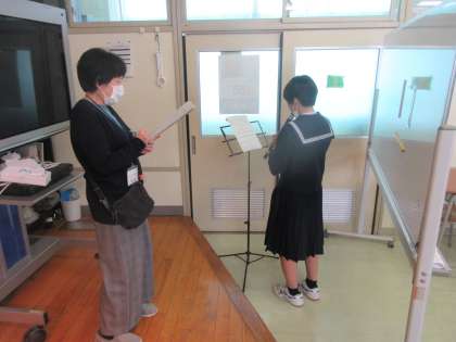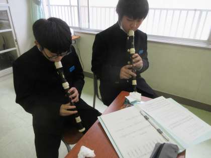 2−1音楽の授業です。 アルトリコーダーのテストです。上手くふけるかな…。