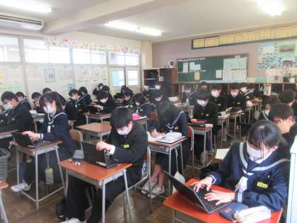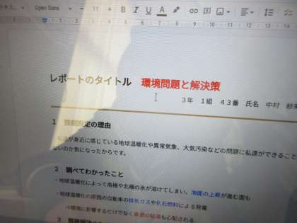 3−1社会の授業です。 環境問題と解決策のレポートを作成中です。