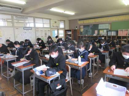 3−2理科の授業です。 練習問題に集中しています。