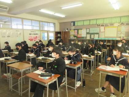 1−4英語、1−5国語の授業です。 英語はペアになって発音練習です。国語は文法を学習しました。