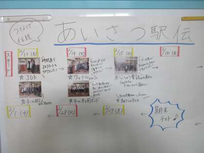 1年学年生徒会の活動、「あいさつ駅伝」です。 たくさん参加しましょう。