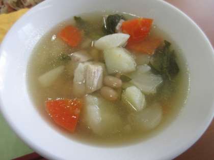 野菜のスープ煮は、様々な野菜と豚肉が入り、栄養満点です。さらに、あっさり味。