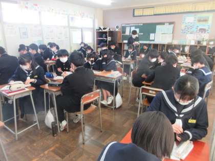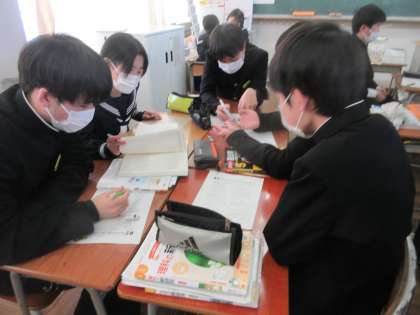 3−1国語の授業です。 文法の復習をしました。受検は、団体戦。