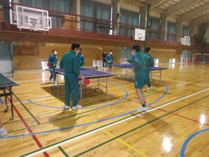 2−1保健体育の授業です。 卓球とバドミントンです。
