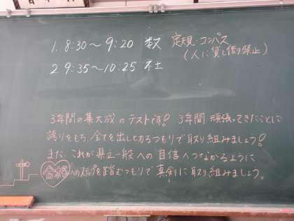 今日は、数学と社会のテストです。 3−1と3−2の様子です。