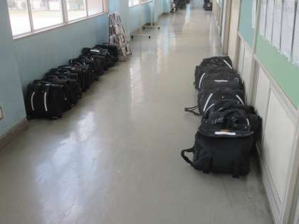 廊下にカバンがきれいに並べられています。 こんな思いが、テストにもきっとよい影響が・・・。