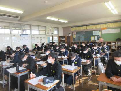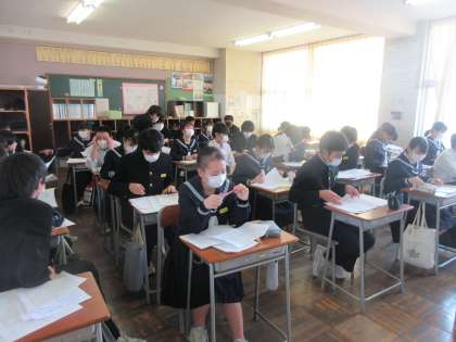 3−2理科、3−3社会の授業です。 確認テストの見直しを行いました。