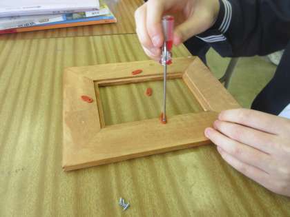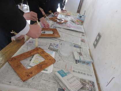 3−4美術の授業です。 フォトスタンドが完成しました。