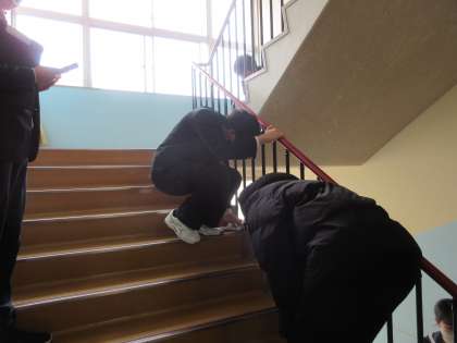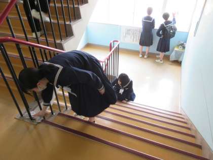 みんな一生懸命です。 Bグループは、いつも使っている南階段です。