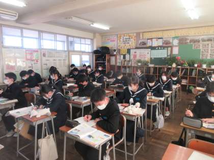 2−1社会、2−2美術の授業です。 社会は北海道の自然を、美術は斜投影図法を学習しました。