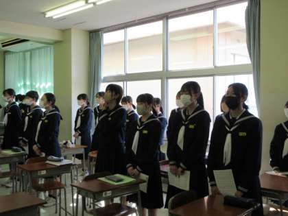 3−2音楽の授業です。 卒業式に歌う合唱曲の練習です。 気持ちがこもっています。