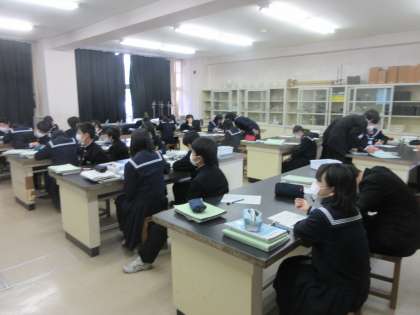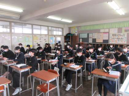 1−3理科、1−4国語の授業です。 理科は柱状図を使った問題に取り組み、国語は表現技法を学習しました。