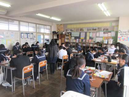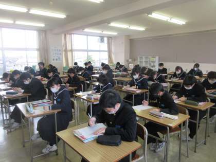 2−3美術、2−4国語の授業です。 美術は等角投影図法を学習し、国語は文法の復習を行いました。