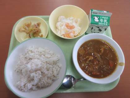 3年生にとって、最後の人気メニュー「カレーライス」です。十分味わってください。