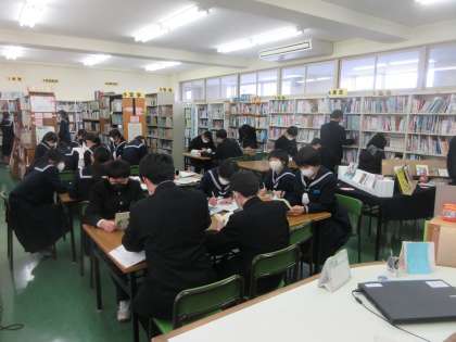 保健体育は、体育館もグラウンドも使えず、図書室で自習です。