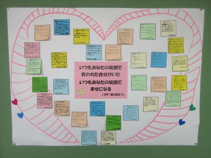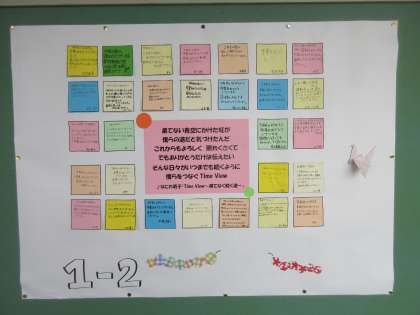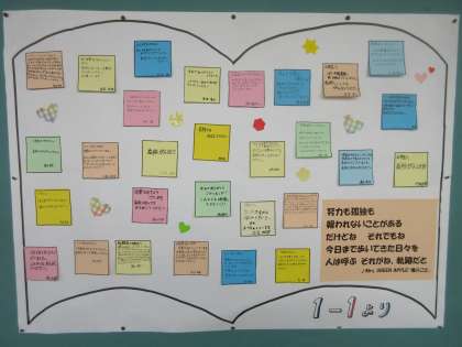 1−1、1−2、1−3からのメッセージです。3年生の教室前に張ってあります。