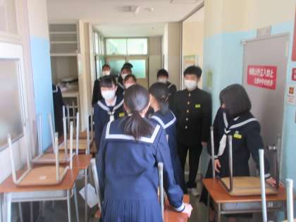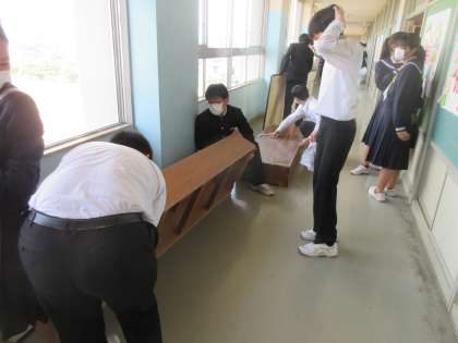 教室のワックスを塗るために、教室をからにします。