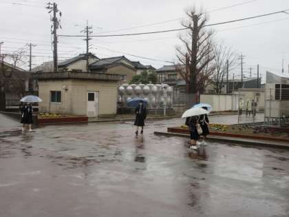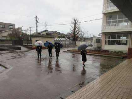 雨の日は周囲の見通しが悪くなります。特に自転車通学生は注意しましょう。