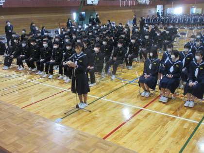 3年生の別れの言葉です。 そして「群青」を合唱します。