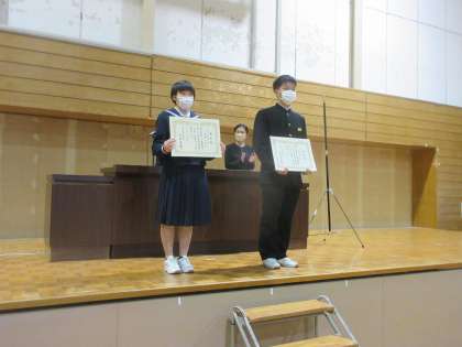 今年度の中体連表彰式を行いました。