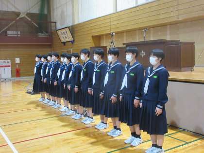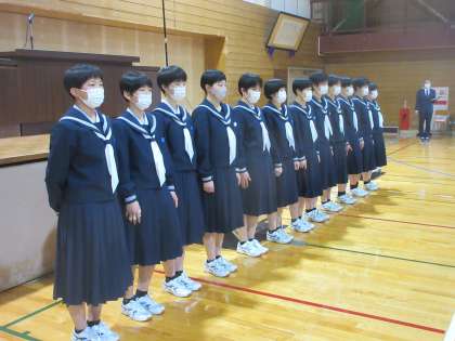週末に、女子バレーボール部が、北信越大会に出場します。 その壮行会を行いました。がんばれ、女子バレー部!!