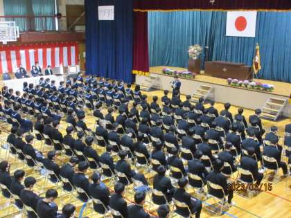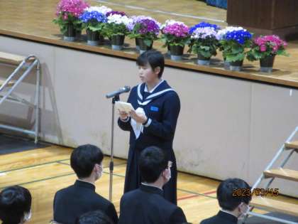在校生を代表して、生徒会長が、卒業する3年生への感謝の気持ちとお祝いを述べました。