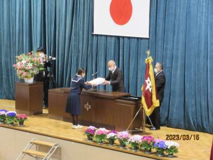 同窓会入会式の様子です。 卒業記念品として印鑑をいただきました。 ありがとうございました。