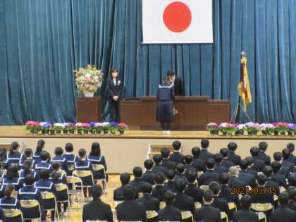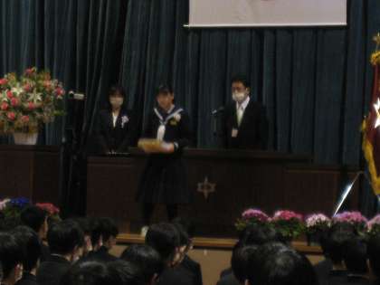 生徒代表に、育友会長様から記念品として証書ホルダーが授与されました。 ありがとうございます。