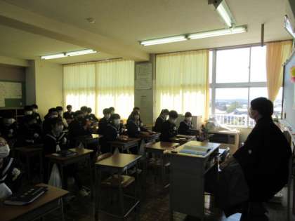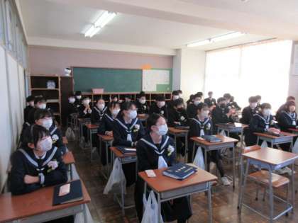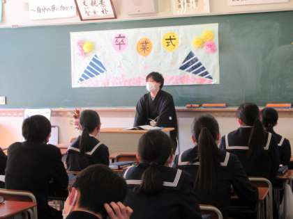 担任の「このクラスでよかったと改めて感じます!!」の言葉に、生徒はうなずいたり、微笑んだりしながら聞いていました。