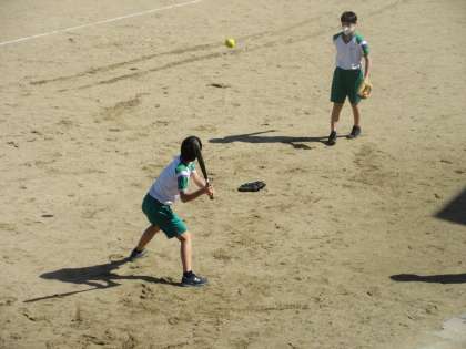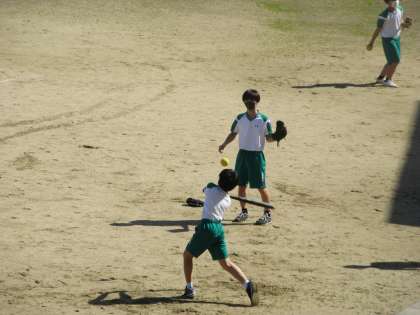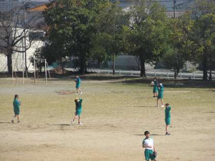 1−1保健体育の授業です。 ソフトボールです。グラウンドでの授業は、気持ちよさそうです。