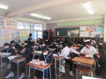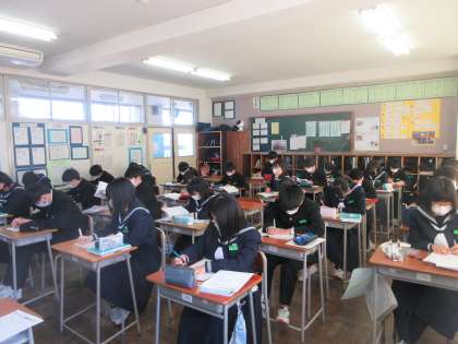 1−2国語、1−3数学の授業です。 国語は随筆を書きました。 数学は、総まとめの練習問題です。