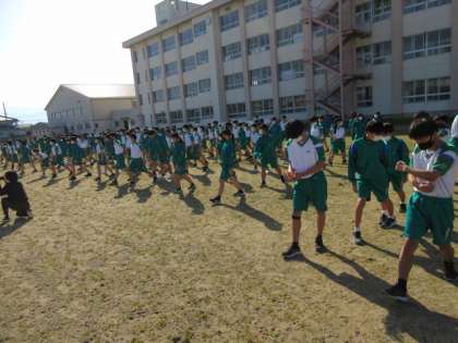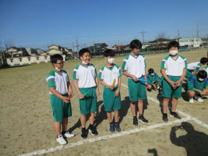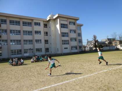 1年生 学年レクリエーション(その1) 公開日 2023/03/22 更新日 2023/03/22 第1学年 本日、1年生は学年レクリエーションを行いました。 天気は快晴でとても気持ちよいです。 まずは準備体操を全員で行いました。 いよいよ競技スタートです。一種目目は、男子全員リレーです。