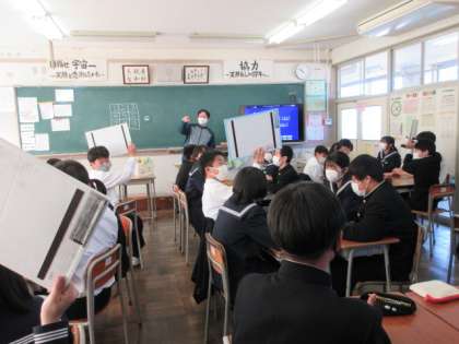 1年生 授業の様子 公開日 2023/03/23 更新日 2023/03/23 第1学年 1組は、保健体育の授業です。 グラウンドでソフトボールをしています。 2組は、英語の授業です。 レイ先生から出される問題に、ホワイトボードで答えています。 3組は、英語の授業です。 リスニング問題に耳を澄ませています。