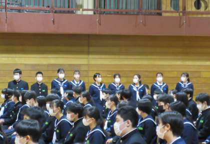 前期生徒会役員 認証式 公開日 2023/03/24 更新日 2023/03/24 北中NEWS 来年度の生徒会役員に、委嘱状を渡しました。 新役員の表情からは、来年度に向けた緊張と、「活気あふれる生徒会にしたい!」という強い決意が感じられました。