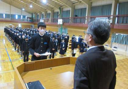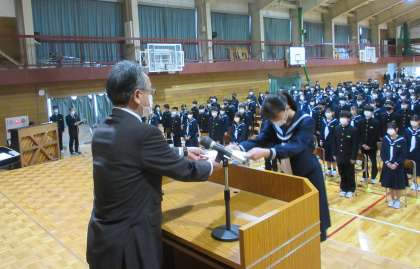 修了式では、各学年の代表生徒に修了証が授与されました。 1年間の成長を実感しています。