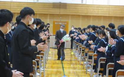 離任式・退任式 公開日 2023/03/24 更新日 2023/03/24 北中NEWS 引き続き、離任式及び退任式を行いました。 今年度たくさんお世話になった先生方に感謝を込め、盛大な拍手でお送りしました。