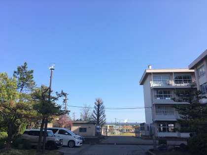 暖かな春の日差しに包まれる北部中学校です。