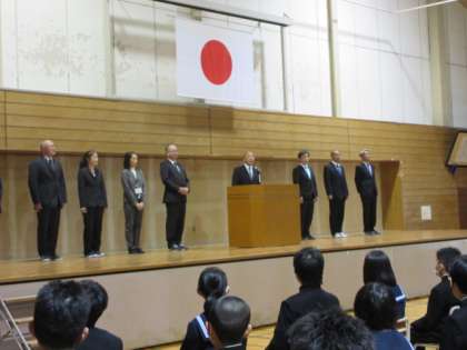 新しく着任された先生方を紹介しました。 校長が代表で挨拶しました。 これからよろしくお願いします!!