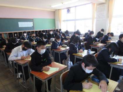 学級活動の時間です。 2年生になっての作文を書きました。 みんな真剣に取り組んでいます。