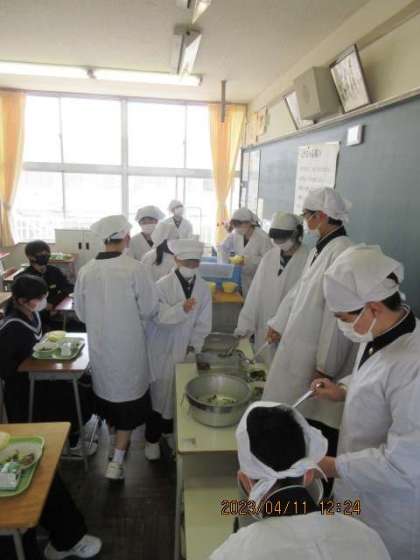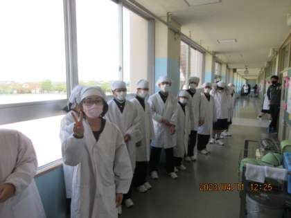 当番が自主的に整列したり、盛りつけたり手際よく給食の準備しています。
