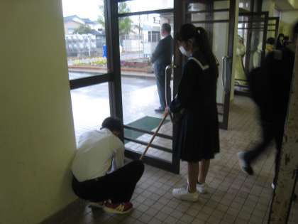 朝の玄関の様子 公開日 2023/04/12 更新日 2023/04/12 北中NEWS 風が吹いて、少し肌寒い朝ですが、北中生はさわやかに今日もボランティア活動をしています。 1年生の挨拶運動参加者の人数が増えました!すばらしいです。そして、今日は雨が降ったので、玄関掃除をしてくれている生徒もいます。