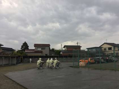 雨ニモマケズ!!生徒は元気に登校しています。