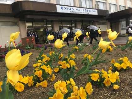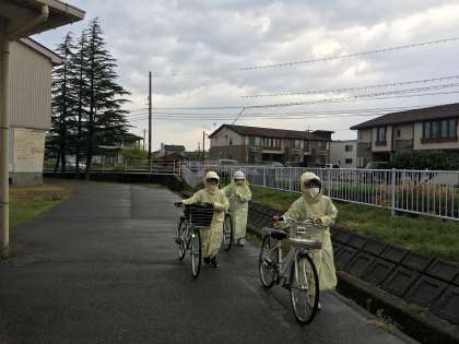 雨ニモマケズ!!生徒は元気に登校しています。