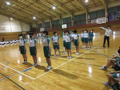 体育の授業です。 整列の練習をしました。