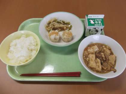 4/14(金)今日の給食 公開日 2023/04/14 更新日 2023/04/14 給食 今日の給食のメニューにある「チョナムル」とは、酸っぱいナムルのことです。 シューマイ・ナムル・マーボー豆腐など、隣国を感じておいしくいただきましょう。 <献立> ごはん 牛乳 にんじんシューマイ 茎わかめのチョナムル マーボー豆腐