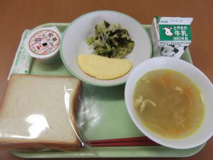 今日の給食はマルガトーニと紅茶ムースで、イギリスの風を感じるメニューでした。